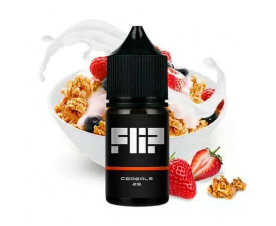 Рідина Flip Cereals (Пластівці) 30мл виготовляється з сольового нікотину, підходить для використання в POD системах з невеликим рівнем потужності. У виробництві використовуються якісні ароматизатори для харчової промисловості, рослинний гліцерин та пропіленгліколь. Під час паріння відчувається яскравий натуральний аромат.