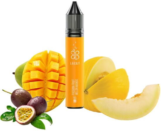 Рідина Lucky Passion Fruit Melon Mango (Маракуйя Диня Манго) 15мл 5% підходить для новачків, а також досвідчених поціновувачів вейпінгу. Серед головних переваг цього продукту варто відзначити високоякісний склад компонентів, який піднесе ваш досвід куріння на новий рівень. Другою перевагою є неперевершений, яскравий і насичений аромат. Рідина для вейпу постачається у зручному для зберігання та транспортування флаконі.