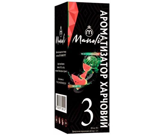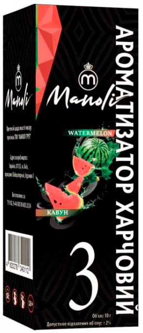 Рідина Манолі Кавун 30мл 5% має відмінні властивості для приємного вейпінгу, виробляється виключно з якісних компонентів. До складу рідини для вейпінгу входять пропіленгліколь, рослинний гліцерин, нікотин та ароматизатори. До складу жижі входять виключно високоякісні ароматизатори, які використовуються у харчовій промисловості.