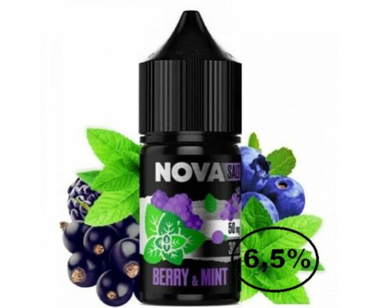 Рідина Nova Berry Mint (Нова Ягода М'ята) 30мол, 6,5% принесе вам справжнє задоволення від вейпінгу. Ідеально підходить для будь-якої POD системи з невеликим рівнем потужності. За яскравий та натуральний аромат відповідають якісні ароматизатори від Європейських та Американських виробників. Жижа виготовлена на основі розчину гліцерину з пропіленгліколем у співвідношенні 50 до 50 %, завдяки чому забезпечується ідеальне співвідношення смакових якостей та кількості пари при вейпінгу.
