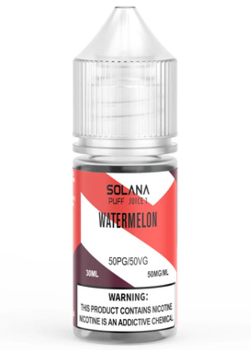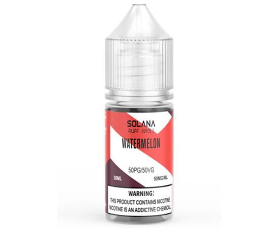 Рідина SOLANA LIQUID 1 - Watermelon (Кавун) 30мл 5% виробляється за сучасними технологіями в лабораторних умовах із сировини преміальної якості. За димність відповідає рослинний гліцерин, що входить до складу продукту. Під час куріння на вас чекає багато густої та ароматної пари. Виведіть свій досвід вейпінгу на новий рівень із цією рідиною для вейпінгу.