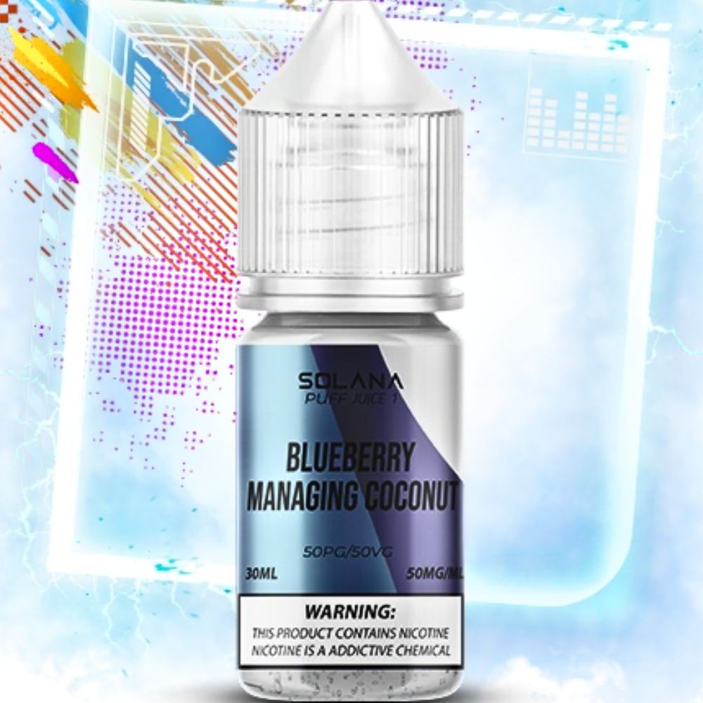 Рідина SOLANA LIQUID Blueberry Managing Coconut (Чорниця Манго Кокос) 30мол 5% виробляється на основі сольового нікотину, пропіленгліколю, рослинного гліцерину та ароматизаторів високої якості. Жижа поставляється у зручних флаконах ємністю 30 мл. Заправка в багаторазову електронну сигарету здійснюється зручно завдяки носику-дозатору. Під час вейпінгу ви відчуваєте приємний ароматний смак із великими та густими хмарами пари.