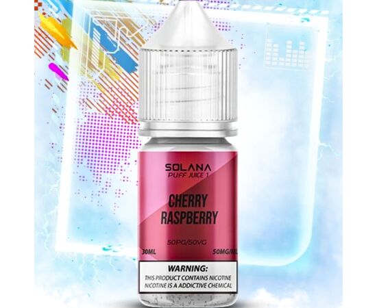 Рідина SOLANA LIQUID Cherry Raspberry (Вишня Малина) 30мол 5% виробляється на основі сольового нікотину, пропіленгліколю, рослинного гліцерину та ароматизаторів високої якості. Жижа поставляється у зручних флаконах ємністю 30 мл. Заправка в багаторазову електронну сигарету здійснюється зручно завдяки носику-дозатору. Під час вейпінгу ви відчуваєте приємний ароматний смак із великими та густими хмарами пари.