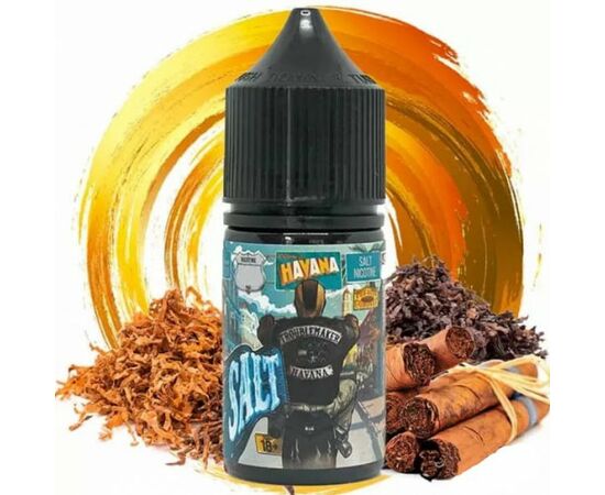 Рідина Troublemaker Havana (Кубинський Тютюн) 30мл виготовляється з сольового нікотину, підходить для використання в POD системах з невеликим рівнем потужності. У виробництві використовуються якісні ароматизатори для харчової промисловості, рослинний гліцерин та пропіленгліколь. Під час паріння відчувається яскравий натуральний аромат.