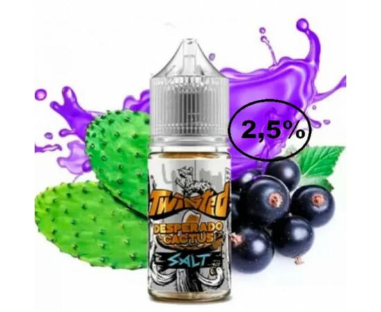 Рідина Twisted Desperado Cactus (Твістед Кактус Смородина) 30мл 2,5% виробляється в Україні з найкращих компонентів з усього світу. Рекомендована для вейпінгу на POD-системах із невеликим рівнем потужності. Середній рівень вмісту нікотину дозволить знизити залежність і може стати ще одним кроком для тих, хто перейшов на вейпінг зі звичайних сигарет, щоб кинути палити. Жижа характеризується яскравим смаком та густим ароматним димом.