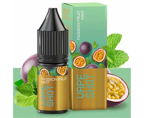 Рідина Vape Shot Passion Fluit Mint (Маракуя М'ята) 10мл 5% виробляється з високоякісних компонентів, таких як рослинний гліцерин, пропіленгліколь, сольовий нікотин у рідкому вигляді та ароматизатори. Відрізняється яскравим та насиченим смаком. Рекомендується для використання у вейпах із невеликою потужністю. Під час ширяння на вас чекають густі хмари пари з улюбленим ароматом.