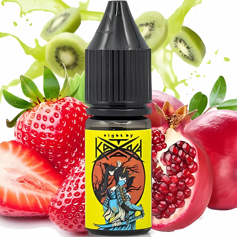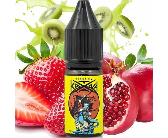 Рідина Eight by Katana Strawberry Kiwi Pomegranate (Полуниця Ківі Гранат) 10мл 5% виготовляється з компонентів високої якості, у тому числі з найкращих ароматизаторів для харчового виробництва, які подарують приємні миті з натуральним смаком. Під час вейпінгу виділяється густа ароматна пара. В одному флаконі жижі достатньо для проведення кількох сеансів куріння вейпу. Рекомендується використовувати у POS-системах.