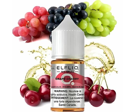 Рідина Elf Liq Grape Cherry (Виноград Вишня) 30мол 5% порадує вас своїм натуральним ароматом, без сторонніх домішок. При вейпінгу утворюються густі хмари ароматної пари. Виготовляється жижа для вейпу із сольового нікотину високої якості, ароматизаторів для харчового виробництва від кращих виробників, а також суміші з пропіленгліколю та рослинного гліцерину. Рекомендовано для використання у POD-системах.