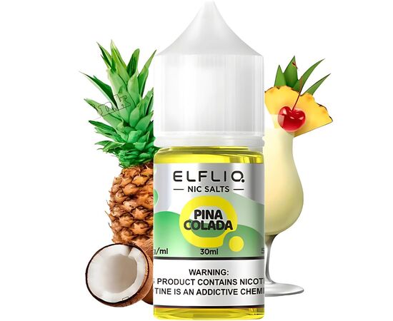 Рідина Elf Liq Pineapple Colada (Ананасова Піна Колада) 30мол 5% порадує вас своїм натуральним ароматом, без сторонніх домішок. При вейпінгу утворюються густі хмари ароматної пари. Виготовляється жижа для вейпу із сольового нікотину високої якості, ароматизаторів для харчового виробництва від кращих виробників, а також суміші з пропіленгліколю та рослинного гліцерину. Рекомендовано для використання у POD-системах.