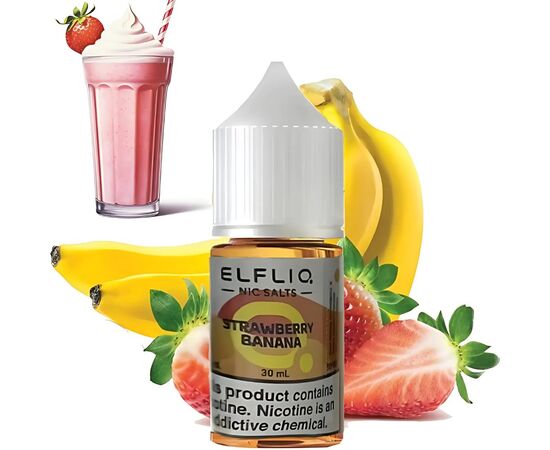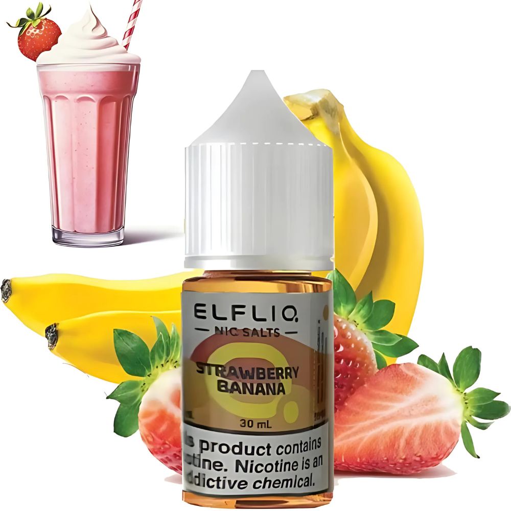 Рідина Elf Liq Strawberry Banana (Полуниця Банан) 30мл 5% порадує вас своїм натуральним ароматом, без сторонніх домішок. При вейпінгу утворюються густі хмари ароматної пари. Виготовляється жижа для вейпу із сольового нікотину високої якості, ароматизаторів для харчового виробництва від кращих виробників, а також суміші з пропіленгліколю та рослинного гліцерину. Рекомендовано для використання у POD-системах.