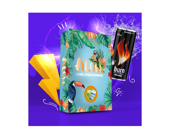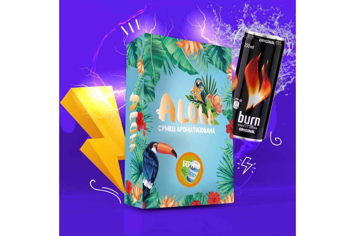 Смак енергетика безнікотинової суміші для кальяну – відмінне рішення для куріння в соло. Також цю суміш можна додати до інших уподобань, трохи приємної кислинки енергетика ніколи не буде зайвою. Суміш для кальяну Aloha (Алоха Берн) 100 гр не містить тютюну та нікотину, не може викликати звикання. Під час куріння суміш показує чудову димність. Куриться м'яко, не б'є по горлі. Фортеця нижче середньої.