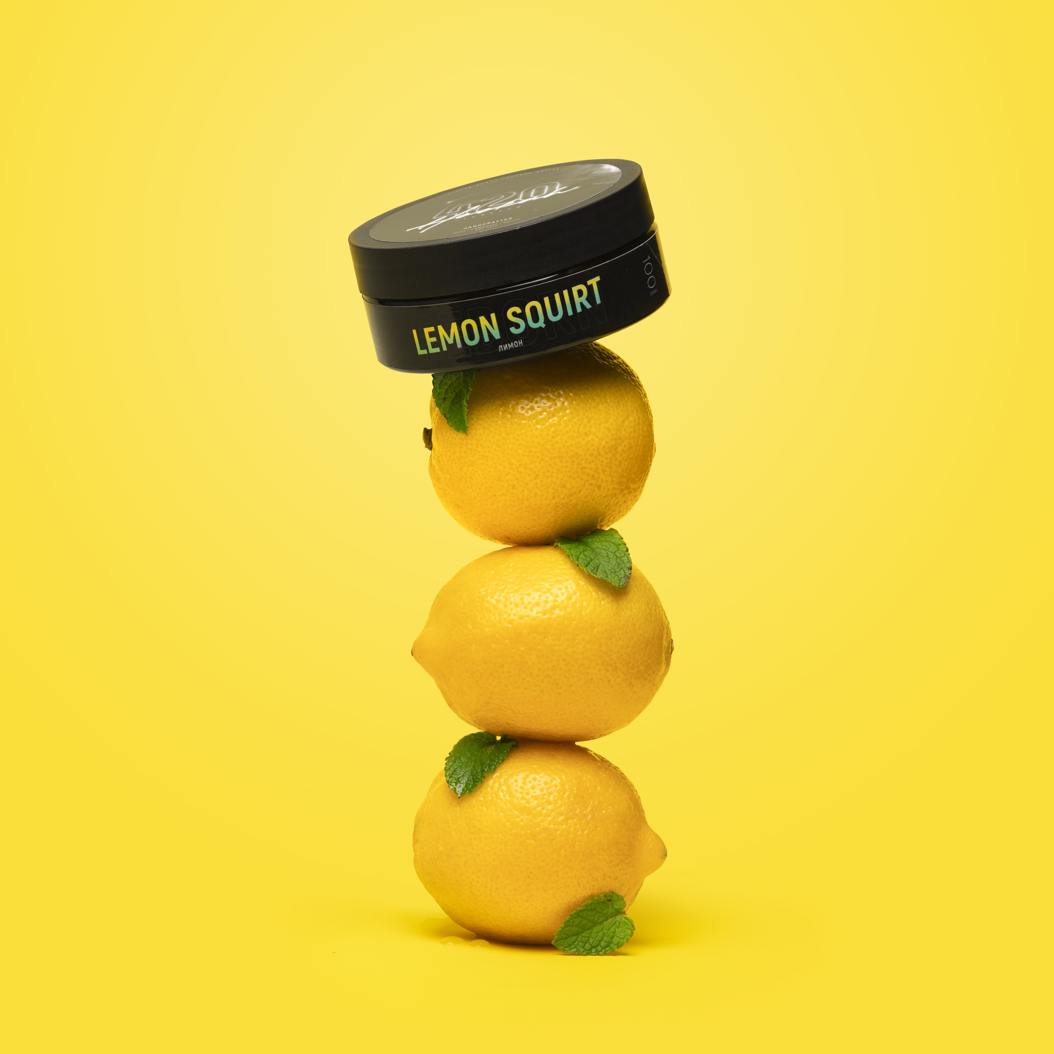 4:20 Lemon Squirt. Дуже насичений лимонний смак, що трохи нагадує сік фрукта, але не викликає оскоми. У зручній пластиковій баночці заправки для кальяну 4:20 ви знайдете крупно нарізану суміш чорного кольору, що складається з бленду тютюну Вірджинія та Барлі преміальної якості з невеликою кількістю рідини. Аромат натуральний, без хімічного присмаку, під час куріння добре розкривається.