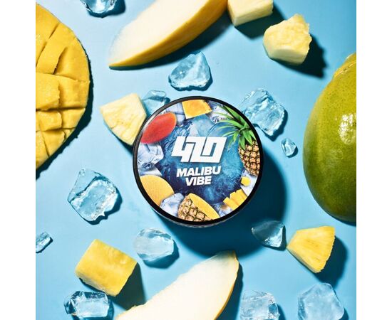 Тютюн 420 Frost Line Malibu Vibes (Ананас Манго Диня) 100 гр характеризується яскравим та натуральним смаком під час куріння кальяну. Виготовляється курильна суміш для кальяну із тютюнового листа високої якості преміального сорту. Міцність продукту – натуральна від тютюнового листа, виробник не додає рідкого нікотину. До складу продукту входять ароматизатори високої якості, призначені для харчової промисловості.