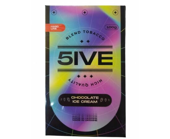 Тютюн 5IVE hard Chocolate Ice Cream (Шоколадне Морозиво) 100грам відрізняється високим рівнем міцності, виробляється в Україні з кращої сировини, такої як добірний тютюновий лист преміальних сортів Золота Вірджинія та Барлі. Продукт характеризується високим рівнем жаростійкості та відмінною передачею смаку. Тютюновий лист нарізаний дрібно і щедро просочений у сиропі з гліцерину, патоки та харчових ароматизаторів.
