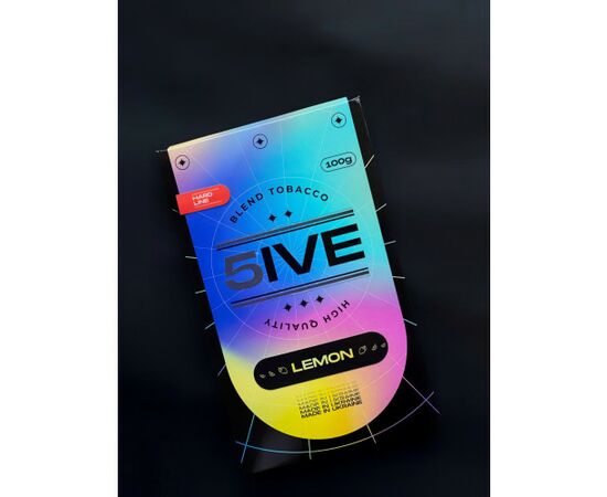 Тютюн 5IVE Hard Lemon (Лимон) 100гр характеризується високим рівнем вмісту нікотину. Виготовляється в Україні із компонентів високої якості. В основі продукту лежить бленд тютюнового листя сортів Вірджинія та Берлі. При виробництві не використовуються барвники. Тютюнове листя дрібно нарізане і досить просочене сиропом. Суміш для кальяну відмінно підходить для створення міксів, добре заходить для куріння в соло.