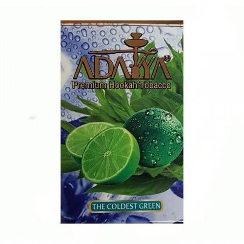 Тютюн Adalya The Coldest Green. Цей смак тютюну для кальяну не залишить вас байдужими, кислинка лайма огорнута м'ятно-ментоловою прохолодою з легкою нотою яблучної. Вирощений під щедрим сонцем Туреччини тютюновий лист відібраний та дбайливо оброблений з додаванням якісних ароматизаторів ліг в основу цієї суміші для куріння кальяну. Має невисоку фортецю, але в той же час чудову димність. Суміш добре переносить жар вугілля.