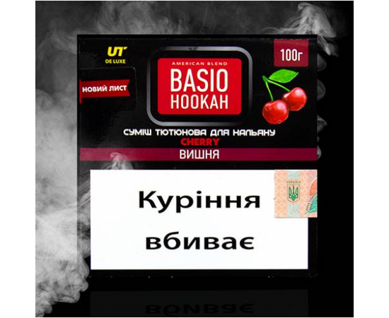 Тютюн Basio Hookah Cherry (Базіо Хука Вишня) 100 грам виробляється в Україні з кращої імпортної сировини, включаючи якісний тютюновий лист преміального сорту, а також найкращі ароматизатори для харчової промисловості. В результаті вийшов продукт з відмінною димністю і приголомшливою передачею смаку, а також добрим рівнем жаростійкості. Рівень міцності можна підвищити або понизити за допомогою способу забиття.