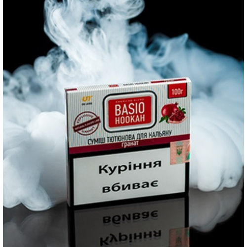 Тютюн Basio Hookah Pomegranate (Базіо Хука Гранат) 100 грам виробляється в Україні з кращої імпортної сировини, включаючи якісний тютюновий лист преміального сорту, а також найкращі ароматизатори для харчової промисловості. В результаті вийшов продукт з відмінною димністю і приголомшливою передачею смаку, а також добрим рівнем жаростійкості. Рівень міцності можна підвищити або понизити за допомогою способу забиття.