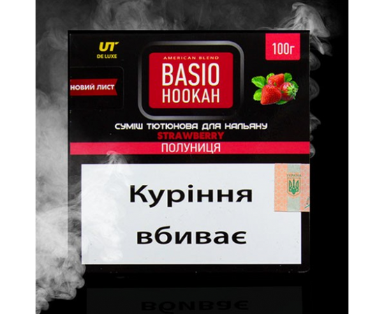 Тютюн Basio Hookah Strawberry (Базіо Хука Полуниця) 100 грам виробляється в Україні з кращої імпортної сировини, включаючи якісний тютюновий лист преміального сорту, а також найкращі ароматизатори для харчової промисловості. В результаті вийшов продукт з відмінною димністю і приголомшливою передачею смаку, а також добрим рівнем жаростійкості. Рівень міцності можна підвищити або понизити за допомогою способу забиття.