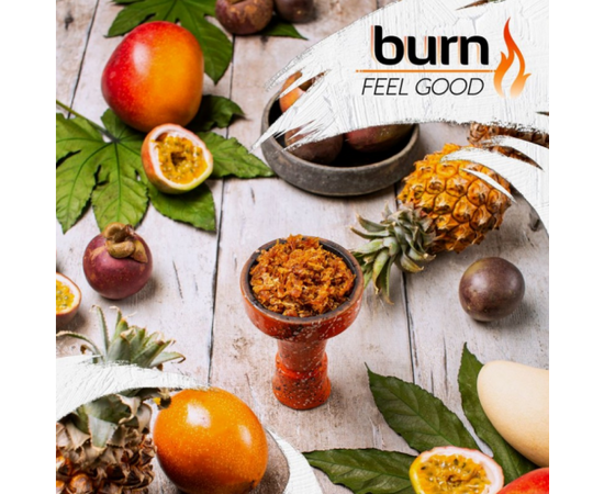 Burn Feel good зі смаком екзотичних фруктів - це дійсно якісний для кальяну, який виготовляється з добірного листя сорту French Virginia Gold. Сировина нарізується на середні фрагменти, вимочується в натуральному меді, після чого просочується сиропом німецького виробництва. Рідини в упаковці небагато, її просто достатньо, для того щоб зволожити листя і наситити їх ароматом.