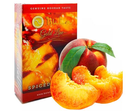Тютюн Buta Spiced Peach. Дуже солодкий персик успішно доповнений смаками різних спецій. В основі тютюнової суміші Buta лежать добірні тютюнові листи преміального сорту Golden Virginia, а також якісні ароматизатори натурального походження. Суміш не містить сміття та гілок, дрібно нарізана. Виготовляється тютюн для кальяну в Йорданії. Смак відчувається дуже яскраво, під час куріння виділяється багато диму. Фортеця середнього рівня.