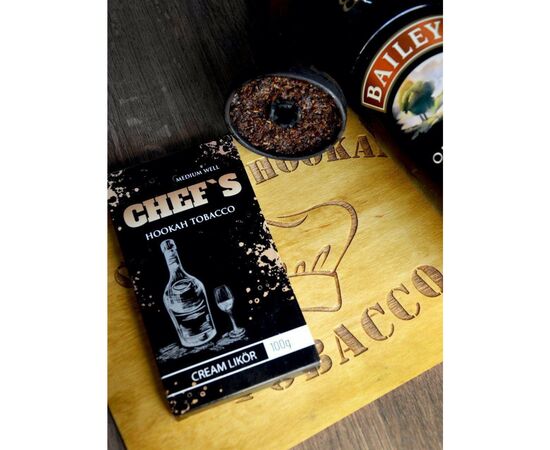 Тютюн Chefs Cream Likor. Міцний, але солодкий смак лікеру з вершковим ароматом. Любителям сумішей для кальяну високої фортеці варто звернути увагу на тютюн Chefs. Це продукт Українського виробництва, який виготовляється з різних сортів тютюнового листа Burley та Virginia вирощеної у Бразилії високої якості. Тютюн нарізаний дрібно, має високий рівень жаростійкості. До складу суміші входять харчові ароматизатори високої якості, гліцерин та цукровий сироп.