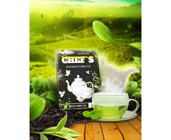 Тютюн Chefs Green Herb Tea (Зелений Трав'яний Чай) 40гр - виготовляється в Україні з компонентів високої якості. Продукт доступний за демократичну ціну, за якістю не поступається відомішим світовим брендам преміальної якості. У складі продукту є достатня кількість рідини. До складу курильної суміші не входять барвники та інші хімічні речовини. У кальяні тютюн проявляється як димний, ароматний та жаростійкий.