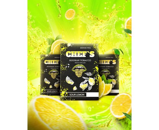 Тютюн Chefs Sour Lemon (Кислий Лимон) 40гр - виготовляється в Україні з компонентів високої якості. Продукт доступний за демократичну ціну, за якістю не поступається відомішим світовим брендам преміальної якості. У складі продукту є достатня кількість рідини. До складу курильної суміші не входять барвники та інші хімічні речовини. У кальяні тютюн проявляється як димний, ароматний та жаростійкий.