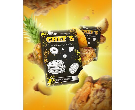 Тютюн Chefs Tropical Cookies (Тропічне Печиво) 40гр - виготовляється в Україні з компонентів високої якості. Продукт доступний за демократичну ціну, за якістю не поступається відомішим світовим брендам преміальної якості. У складі продукту є достатня кількість рідини. До складу курильної суміші не входять барвники та інші хімічні речовини. У кальяні тютюн проявляється як димний, ароматний та жаростійкий.