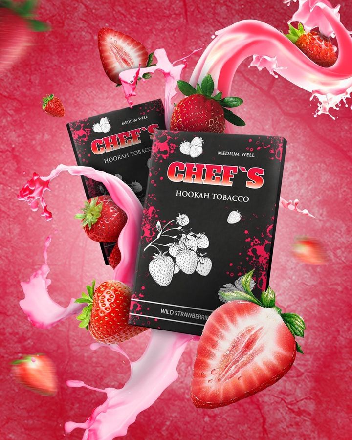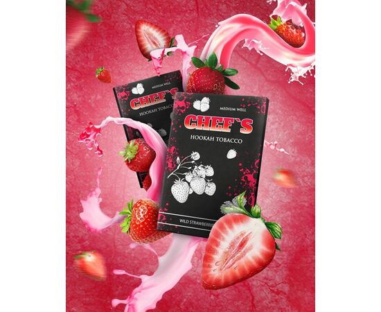 Тютюн Chefs Wild Strawberries (Суниця) 40гр - виготовляється в Україні з компонентів високої якості. Продукт доступний за демократичну ціну, за якістю не поступається відомішим світовим брендам преміальної якості. У складі продукту є достатня кількість рідини. До складу курильної суміші не входять барвники та інші хімічні речовини. У кальяні тютюн проявляється як димний, ароматний та жаростійкий.