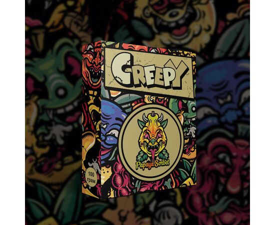Тютюн Creepy Papaya Sorbet (Папая Сорбет) 100гр виготовляється з натуральних тютюнових листів преміальної якості. У процесі виробництва не використовуються барвники та рідкий нікотин. Під час куріння виділяється велика кількість ароматного диму. Курильна суміш для кальяну має відмінні показники жаростійкості. Заправка для куріння наргіле добре входить у соло, також може стати основою для створення міксу.