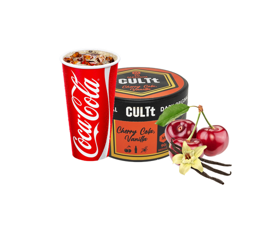 Тютюн CULT Medium M90 Cherry Cola Vanilla (Вишня Кола Ваніль) 100гр дозволяє насолодитись вживанням нікотину з улюбленим смаком. Виготовляється виключно із компонентів високої якості. При курінні виділяється велика кількість диму із улюбленим ароматом. Кількість тютюну в упаковці вистачає на кілька разів куріння кальяну. Забивати виробник рекомендує у глиняну чашу для максимального розкриття смаку.