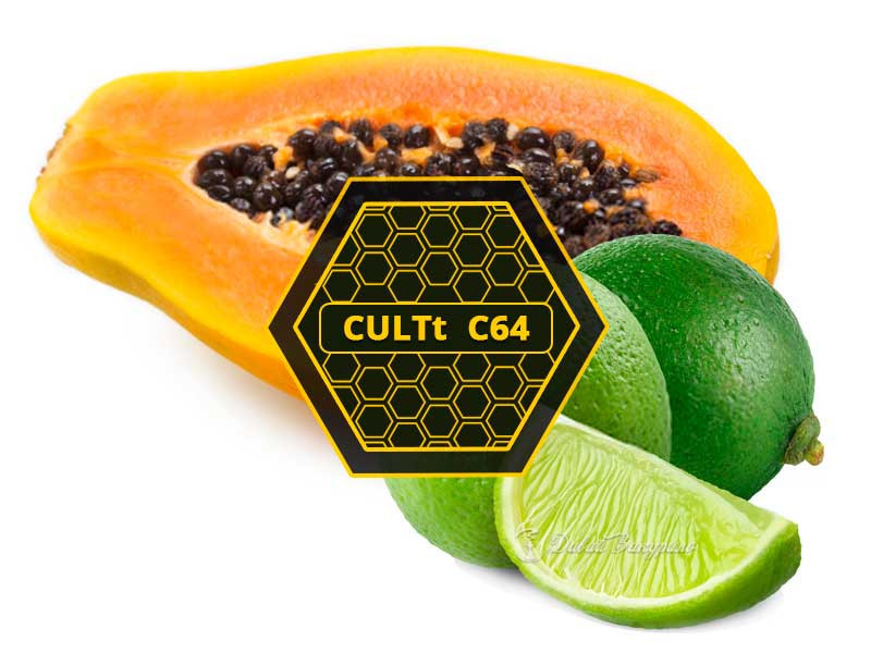 Тютюн CULTT C64 Papaya Lime. Екзотична папайя створює приголомшливий дует із кислим лаймом. Тютюнова суміш для кальяну CULTt чудово підходить любителям легкого куріння. Виготовляється в германії із тютюнових листів преміального сорту Вірджинія Голд. Готова суміш не містить сторонніх елементів, добре подрібнена і вимагає відтискання. Характеризується високим рівнем димності та тривалим часом куріння.