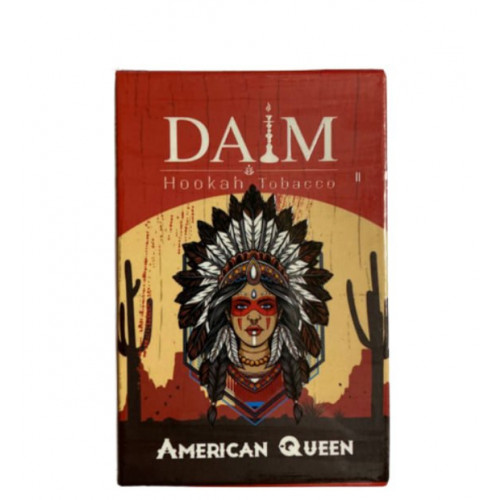 Тютюн Daim American Queen (Даїм Американська Королева) 50 грам - відмінний варіант для димного та смачного кальяну. Виготовляється на основі якісного добірного тютюнового листа преміального сорту. У процесі виготовлення використовуються найкращі ароматизатори, які сертифіковані для застосування у харчовій промисловості та безпечні для людини. До складу готового продукту входить також патока та гліцерин.