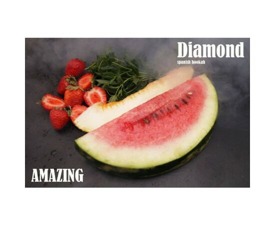 До приголомшливого дуету кавуна та дині додали стиглу полуницю та прохолодну м'яту. Тютюнове заправлення для кальяну Diamond виробляється в Іспанії в першу чергу для країн Європейського союзу та відповідає високим стандартам якості. Тютюнове листя сорту Вірджинія вирощується під щедрим Іспанським сонцем. До складу суміші входить натуральний мед, а також якісні ароматизатори. Характеристики: h3>