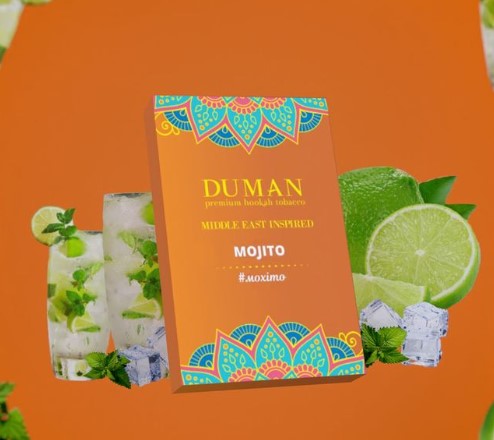 Тютюн Duman Mojito (Мохіто) 100гр порадує вас оригінальним смаком та натуральним яскравим ароматом. Виготовляється із сировини високої якості. До складу продукту входять найкращі ароматизатори, за допомогою яких відтворюється смак близький до оригінального. Подарує вам найкращий досвід куріння кальяну, насолоджуватися яким ви можете протягом тривалого часу.