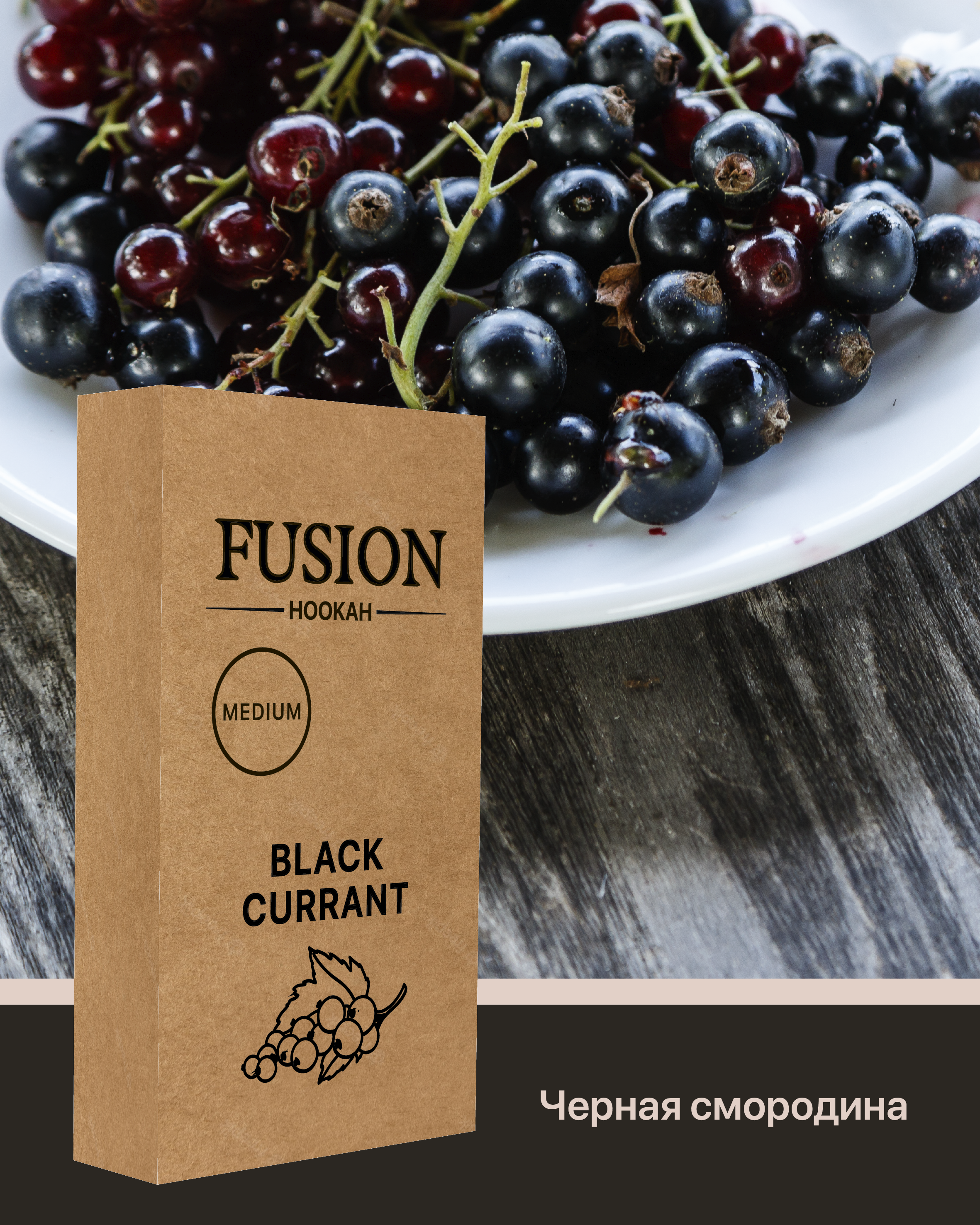 Тютюн Fusion Medium Blackcurrant. Чорна смородина характеризується кисло-солодким смаком, ідеально поєднуючись з тютюновим димом. Це Український бренд тютюну для кальяну, який виробляється з добірного листя сорту Burley, а також ароматизаторів Німецького виробництва високої якості. Під час тютюн куріння характеризується приємним ароматом та великою кількістю диму. Серія Medium відрізняється середнім рівнем фортеці. Тютюн поставляється в зручних картонних 100 грамових упаковках. Кислота: Легка кислинка; Солодкість: Солодкий; Смак: Чорна Смородина; Країна виробник: Україна; Вага: 100 гр; Фортеця: Міцний; Тип суміші: Тютюн; Упаковка: Пачка