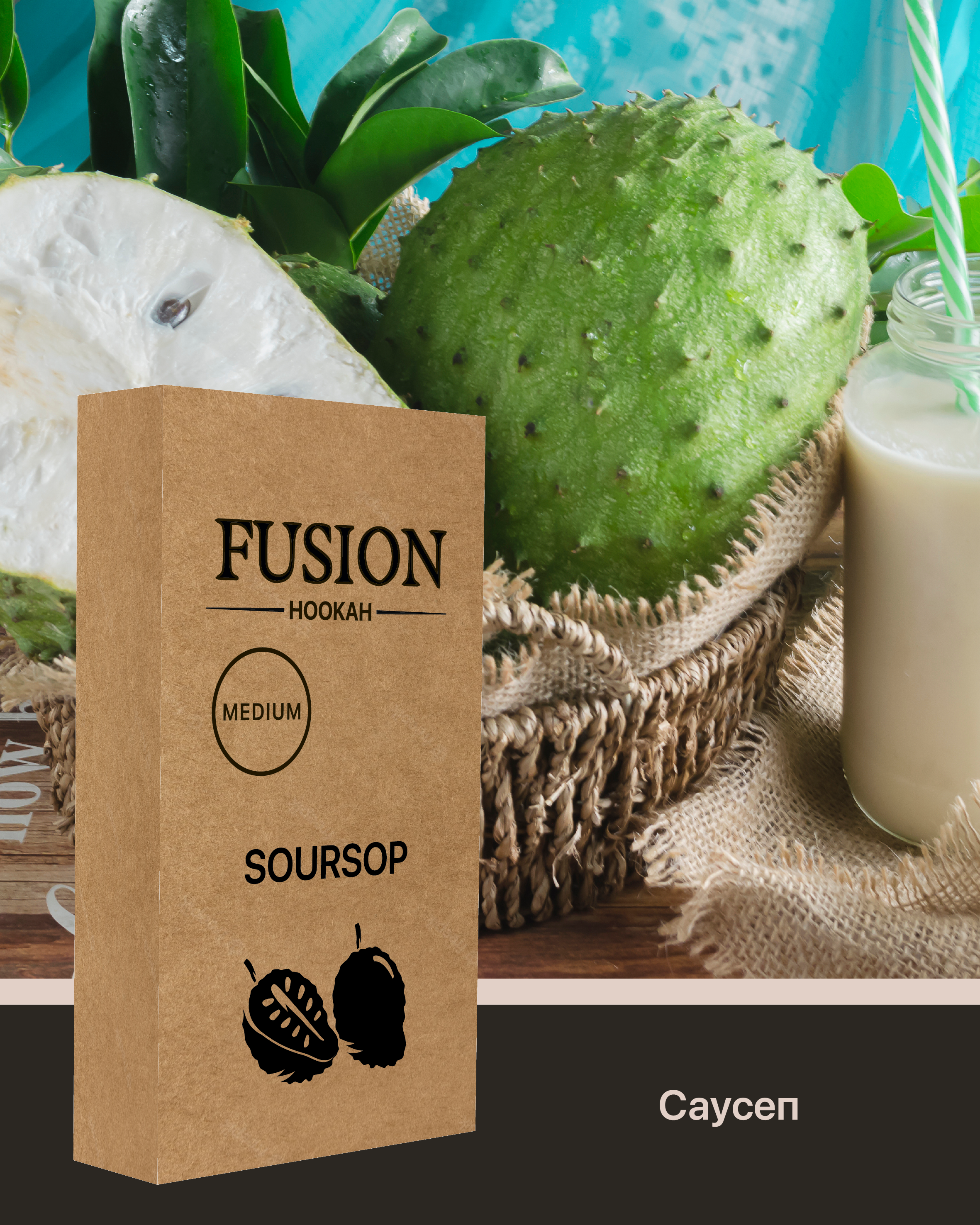 Тютюн Fusion Medium Soursop. Яскравий смак екзотичного плоду. Це Український бренд тютюну для кальяну, який виготовляється з добірного листя сорту Burley, а також ароматизаторів Німецького виробництва високої якості. Під час тютюн куріння характеризується приємним ароматом та великою кількістю диму. Серія Medium відрізняється середнім рівнем фортеці. Тютюн поставляється в зручних картонних 100 грамових упаковках. Кислота: Легка кислинка; Солодкість: Солодкий; Смак: Саусеп; Країна виробник: Україна; Вага: 100 гр; Фортеця: Міцний; Тип суміші: Тютюн; Упаковка: Пачка