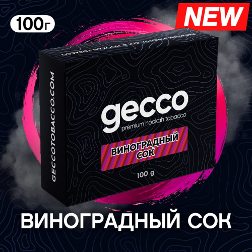Тютюн Gecco Виноградний Сік 100 грам виготовляється з якісної сировини, характеризується високою якістю під час куріння. В основі курильної суміші для кальяну є якісний тютюновий лист преміального сорту. Заправка відрізняється відмінними показниками димності та жаростійкості. До складу продукту входить ароматизатор, гліцерин та патока.