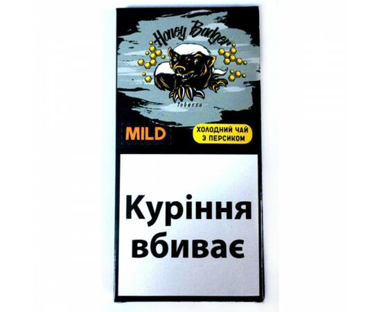 Тютюн Honey Badger Mild. Солодкий смак чаю з персиковим ароматом та приємною прохолодою. Honey Budger - це торгова марка тютюну для кальяну з України, яка випускається за акцизною маркою. Суміш для кальяну відрізняється оригінальним смаком, високим показником димності, дрібною нарізкою тютюну та середньою кількістю сиропу. У виробництві використовують високоякісні ароматизатори. Лінійка Mild відрізняється легкою міцністю, підходить для новачків. 40 грамової упаковки вистачає, для того щоб спробувати незнайомий раніше смак.