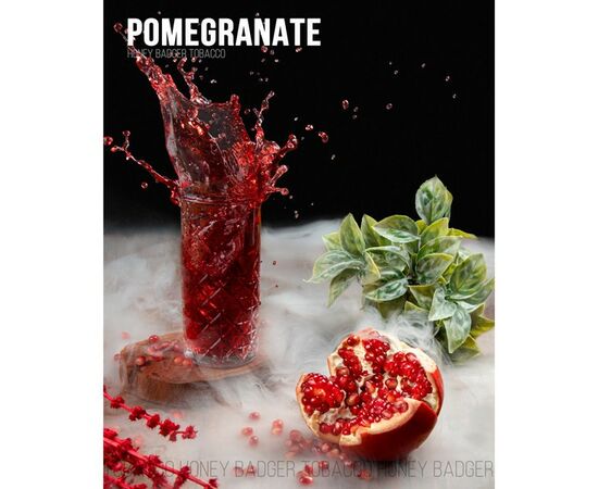 Тютюн Honey Badger Mild Pomegranate. Хороший смак гранату, помірно солодкий і помірно кислий, з невеликою терпкістю. Honey Budger - це торгова марка тютюну для кальяну з України, яка випускається за акцизною маркою. Суміш для кальяну відрізняється оригінальним смаком, високим показником димності, дрібною нарізкою тютюну та середньою кількістю сиропу. У виробництві використовують високоякісні ароматизатори. Лінійка Mild відрізняється легкою міцністю, підходить для новачків. 250 грамової упаковки вистачає для великої вечірки.