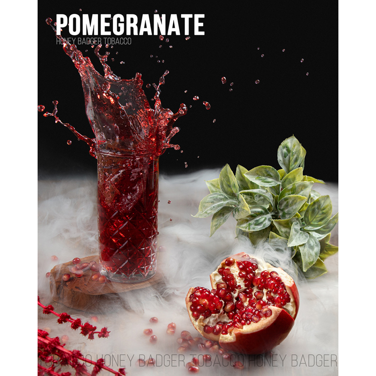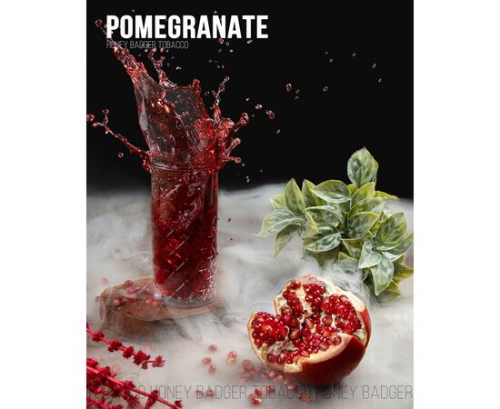 Тютюн Honey Badger Wild Pomegranate. Натуральний смак граната, помірно солодкий та помірно кислий, з невеликою часткою терпкості. Honey Budger - це торгова марка тютюну для кальяну з України, яка випускається за акцизною маркою. Суміш для кальяну відрізняється оригінальним смаком, високим показником димності, дрібною нарізкою тютюну та середньою кількістю сиропу. У виробництві використовують високоякісні ароматизатори. Лінійка Wild відрізняється високою міцністю. 250 грамової упаковки вистачає для великої вечірки.