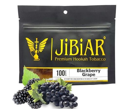 Тютюн Jibiar Blackberry Grape (Джибіар Ожина Виноград) 100 грам заснований на тютюнових листах преміального сорту високої якості, цей тютюн збагачений натуральними ароматизаторами, патокою та чистим гліцерином, що надає йому насичений смак, приємний аромат та сприяє утворенню густого диму. Цей тютюн має неймовірну інтенсивність смаку, який можна насолоджуватися як у чистому вигляді, так і у складі міксів.