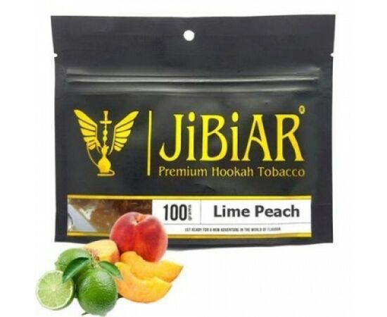 Тютюн Jibiar Lime Peach (Джибіар Лайм Персик) 100 грам заснований на тютюнових листах преміального сорту високої якості, цей тютюн збагачений натуральними ароматизаторами, патокою та чистим гліцерином, що надає йому насичений смак, приємний аромат та сприяє утворенню густого диму. Цей тютюн має неймовірну інтенсивність смаку, який можна насолоджуватися як у чистому вигляді, так і у складі міксів.