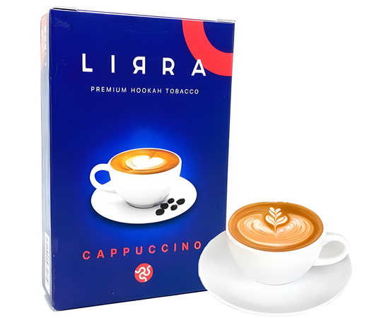 Тютюн Lirra Cappuccino (Лірра Капучино) 50 гр - унікальний дизайн упаковки з індивідуальними картинками та оформленням. Для надання смакових якостей використовують високоякісні ароматизатори, які дозволені для використання в харчовій промисловості. Продукт містить рослинний гліцерин, що забезпечує густі клуби диму. Під час куріння на вас чекає насичений і яскравий аромат з натуральними нотами.