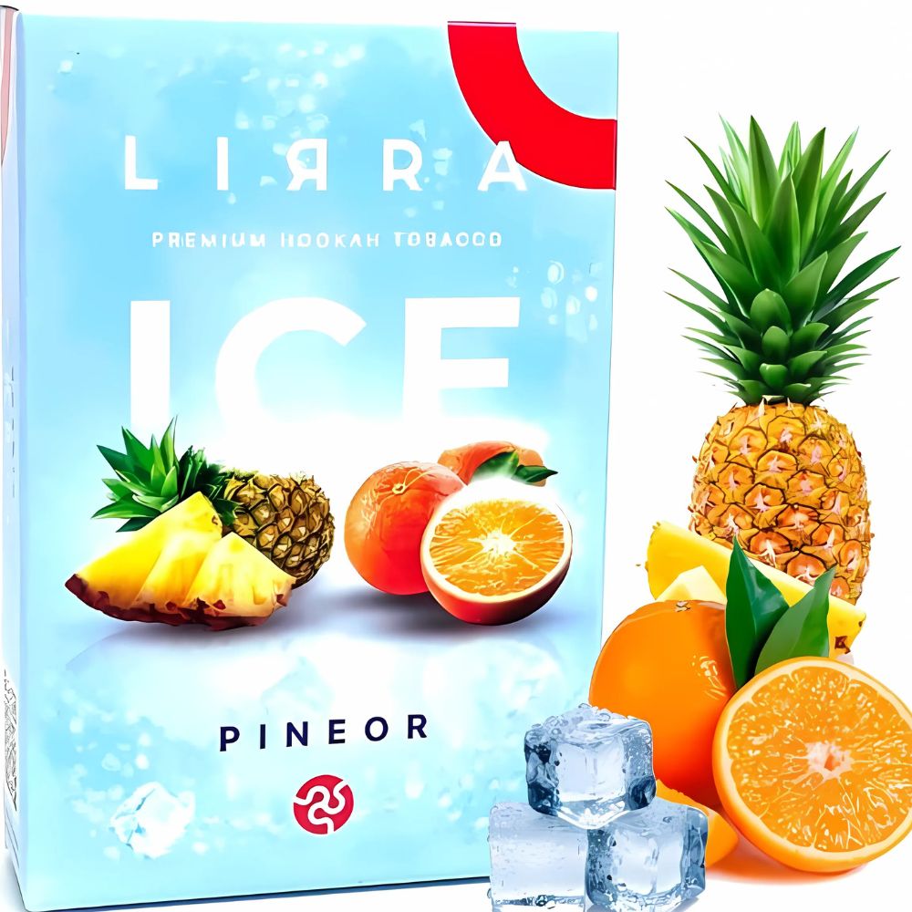 Тютюн Lirra Ice Pineor (Ананас Апельсин Лід) 50 гр відрізняється високою якістю виготовлення та густим ароматним димом під час куріння кальяну. Виготовляється заправка для кальяну з тютюнового листа високої якості. У процесі виробництва не використовуються барвники та інші шкідливі речовини. Крім тютюнового листа преміального сорту до складу продукту входить гліцерин, ароматизатори для харчового виробництва та патока.