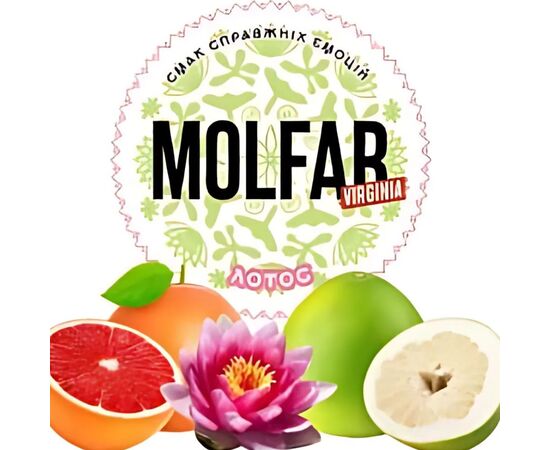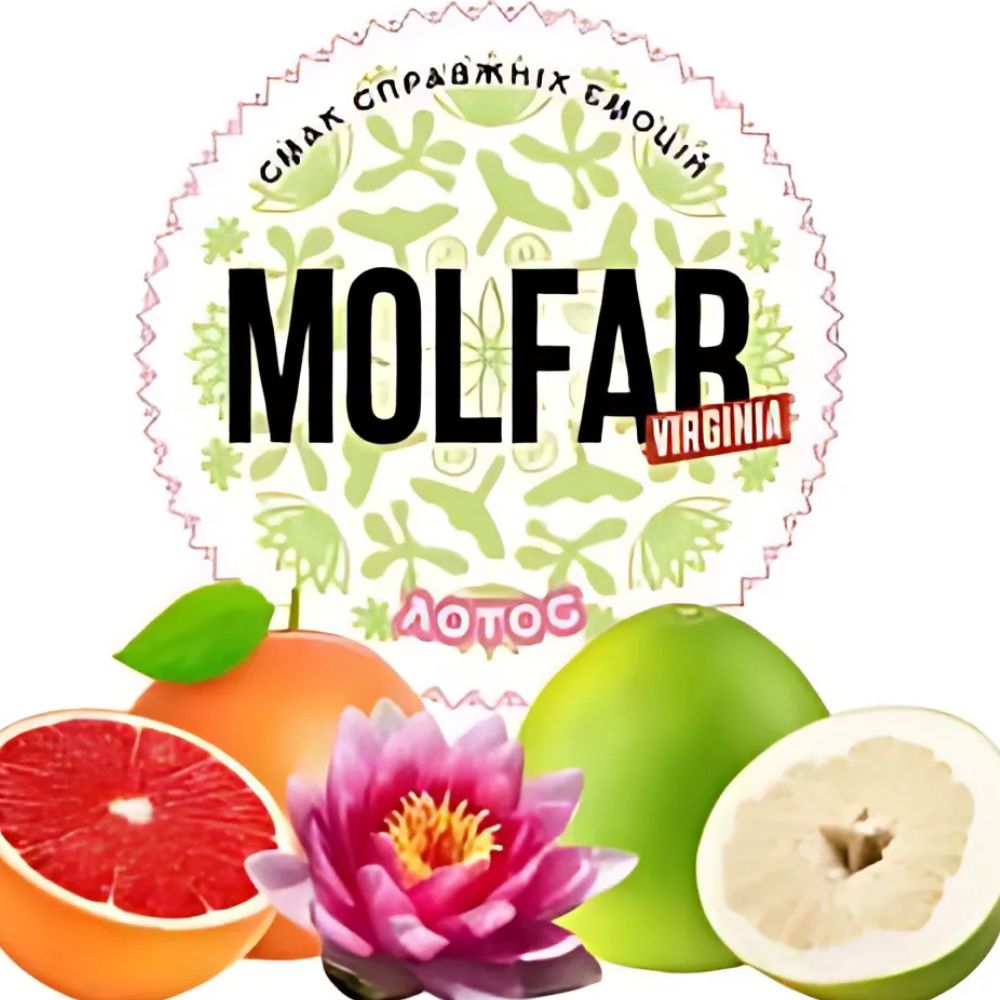 Тютюн Molfar Virginia Line Лотос (Грейпфрут Лотос Помело) 100 гр тримає приємний, ароматний та насичений смак від першої до останньої затяжки протягом тривалого часу куріння кальяну. Заправка для кальяну відрізняється високим рівнем жаростійкості та димності. Виготовляється продукт із тютюнового листа високої якості преміального сорту. Для того щоб смак був максимально натуральним, виробник рекомендує використовувати глиняну чашу.