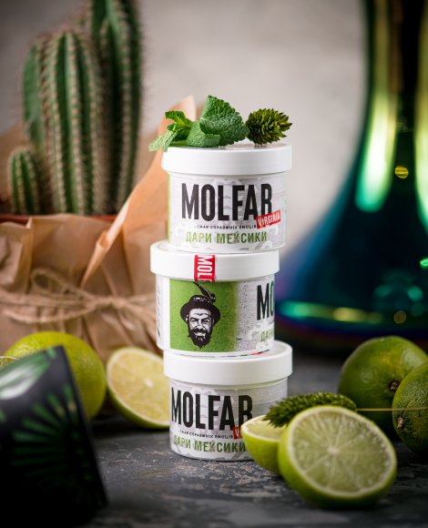 Тютюн Molfar Virginia Дарі Мексики (Кактус Лайм) 40 гр - український бренд тютюну для кальяну, що виробляється вручну на Закарпатті. Назва походить від карпатського слова "мольфар", що означає знахаря або чаклуна в гуцульській культурі. Належить до лінійки Virginia. Тютюн підходить як для самостійного використання, так і для створення міксів. Популярність бренду "Мольфар" обумовлена поєднанням високої якості, натуральності інгредієнтів, чудової жаростійкості, хорошої смакопередачі та доступної ціни.
