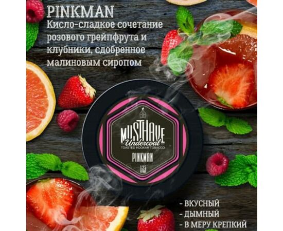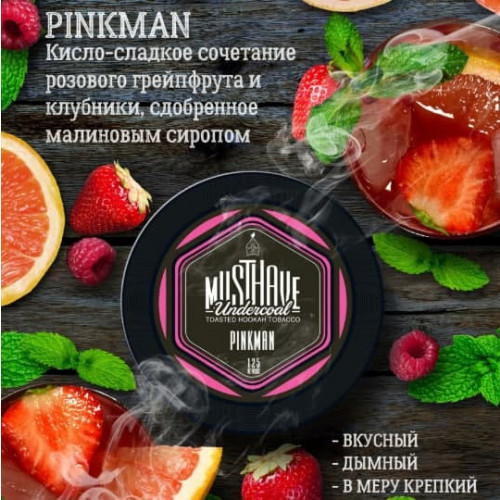Тютюн Must Have Pinkman (Маст Хев Пінкмен) 25 грам виробляється виключно з якісної сировини. В основі продукту лежать добірне тютюнове листя преміального сорту Барлі. Також для виготовлення кальянної заправки використовуються ароматизатори для харчової промисловості, гліцерин та патока. Фортеця продукту висока. Тютюн знаходиться у великій кількості сиропу, можливо буде потрібно віджимання. Суміш має відмінні показники жаростійкості і димності.