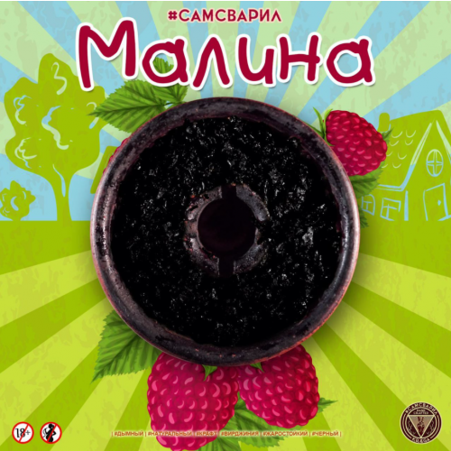 Тютюн Сам Зварив Малина 100 гр. Стигла ягода малина відмінно заходить у соло, порадує Вас своїм солодким освіжаючим ароматом. Сам Сварил належить до крафтових заправок для кальяну. Має високу жаростійкість, має солодкий смак завдяки виготовленню з добірного тютюнового листя сорту Virginia Gold. Готова суміш має чорний колір, що не властиве тютюнових листів цього сорту. До складу продукту також входять ароматизатори українського та німецького виробництва. В упаковці знаходиться невелика кількість сиропу, міцність суміші середня.